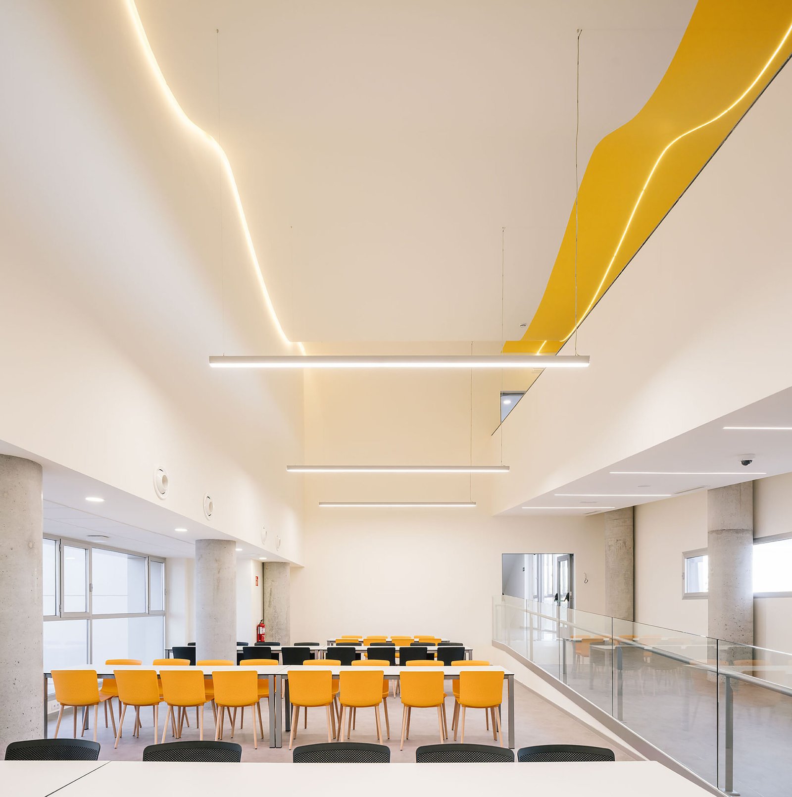 The refurbished space will be linked to the new laboratory building and will be used for administrative purposes, mainly by research and administrative staff, and for campus management offices and meeting rooms and/or classrooms.